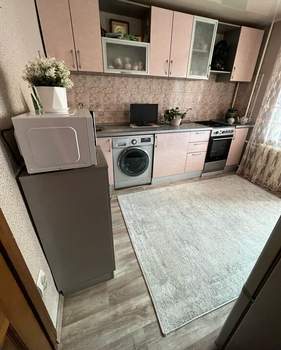 На кухне свой стол, шкаф и полки. На кухне холодильник, микроволновка, плит; в комнате - двуспальная кровать и шкаф купе, комод, телевизор. В ванной стиральная машина, в коридоре вешалка и место для ...